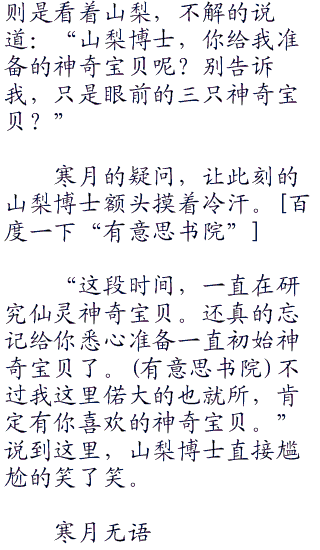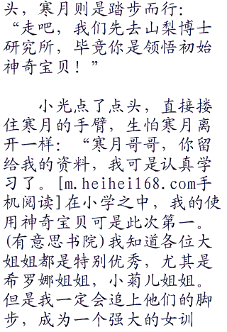 说完,小光则是从寒月怀中出来,带着羞涩的目光说道:“寒月哥哥!”