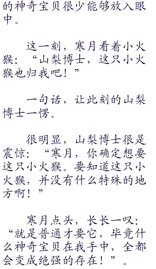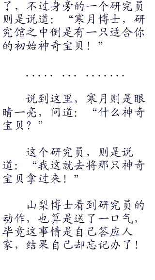 遗传绝招,神奇宝贝基本上都会,但是隐藏在身躯之中不曾使用过。寒月让眼前的两只神奇宝贝,不断的使用水枪和火花,激发他们体内的遗传绝招,直接使用出如今的绝招。