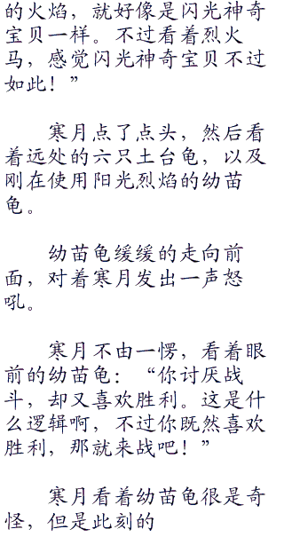 寒月则是摇头,指着被六只土台龟围在中间的幼苗龟说道:“我的目的是这只幼苗龟,可不是你们六只已经进化的土台龟。”