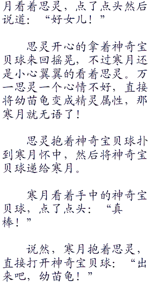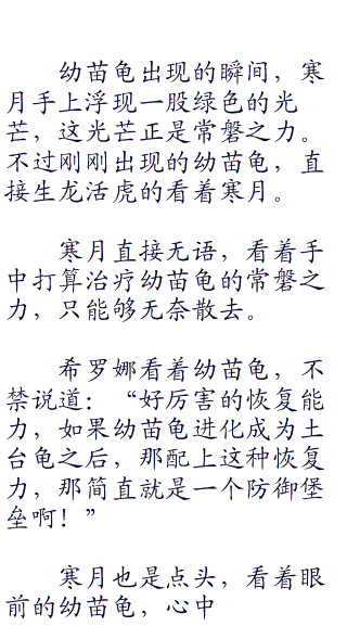 寒月看着幼苗龟,虽然不了解这只幼苗龟,但是大体上还是有些察觉。