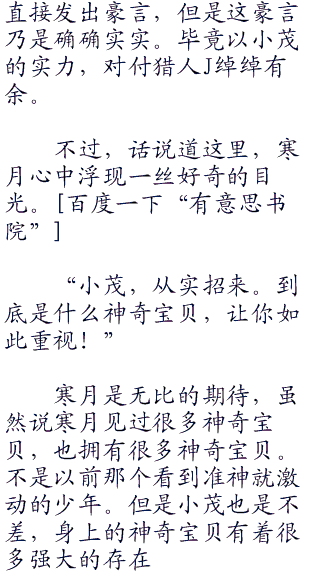 小茂震惊的无法言语,寒月则是看着猎人j:“真是不好意思,我女儿的能力特殊.........”