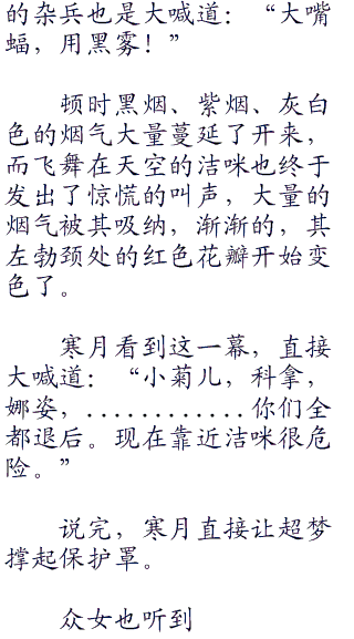 洁咪被十几只大嘴蝠攻击,虽然洁咪已经使用天空形态,但是面对十几只的大嘴蝠还是有些吃力。