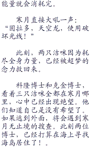 看着能量柱超越了%,科隆博士仍旧没有叫停止,而是近乎疯狂的大吼着“继续,继续,我要大量的污染”显然是不在乎会对洁咪造成的伤害。