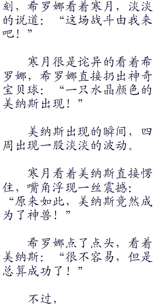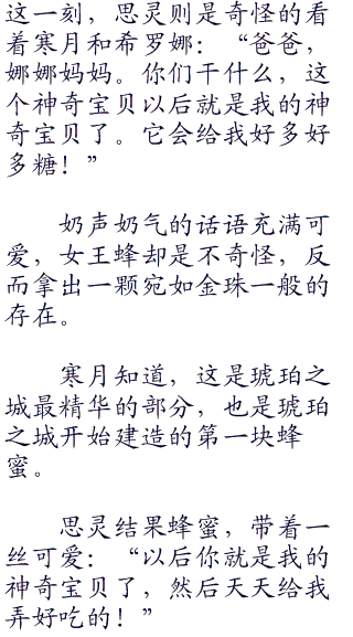 思灵奇怪的看着寒月,希罗娜则是无奈点头:“看来,今天有蜂蜜吃了!”