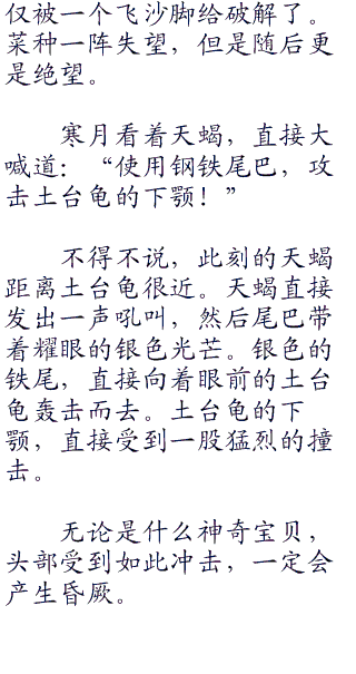 如果是,刚才那一招命中姆克儿,姆克儿绝对失去战斗能力。毕竟连续两场的战斗,已经让姆克儿精疲力尽。不过对于菜种的突然偷袭,寒月直接收回神奇宝贝不算是违反。再说菜种先打破的规矩,就算寒