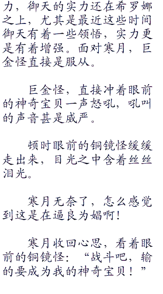 寒月的震惊也是有道理,毕竟希罗娜可是收服一只巨金怪,要是这只巨金怪也是以白银黄金为食,这得需要多少食物啊!