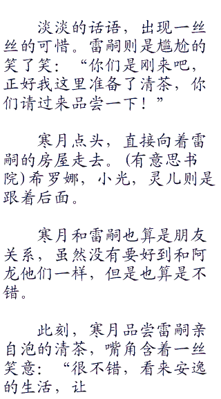 寒月无奈了,看着思灵,尤其是那不断吃这零食的小嘴,以及那怎么吃也吃不胖的身体。这让那些减肥人士情以何堪啊!