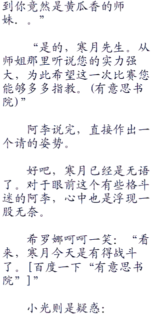 女子看着寒月,直接恭敬的鞠躬:“欢迎您的挑战,我从师姐那里听说过你。如今面临您的指导,