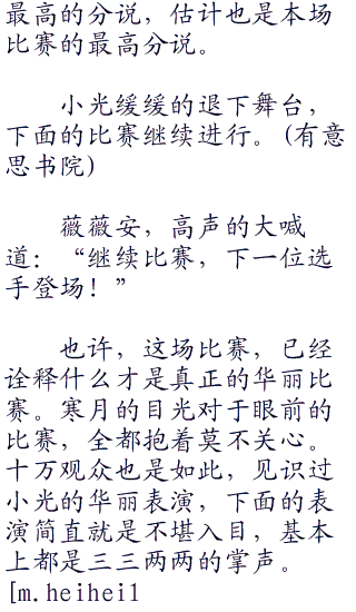 时间流逝,表演的时间结束,美妙的音乐也已经消失无数人从幻境之中清醒过来,目光带着诧异,很是骇然的凝视舞台上鞠躬的小光。