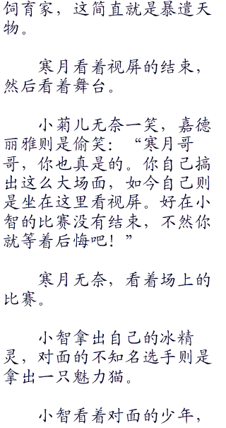小菊儿点头:“好厉害,论华丽表演,我想这个世界上没有人能够比得过小光。”
