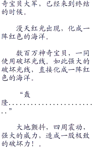 几十万只电系神奇宝贝一同使用十万伏特。几十万只火系神奇宝贝一同使用喷射火焰。
