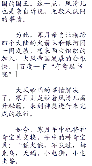凤清儿归为女皇,如今却跟随寒月回到神奥帝国,跟随寒月一起旅行。寒月很是感动,但是大风帝国的事情也是要妥善处理。