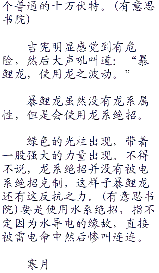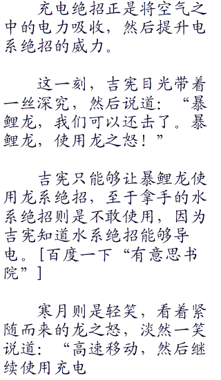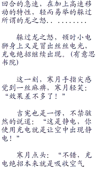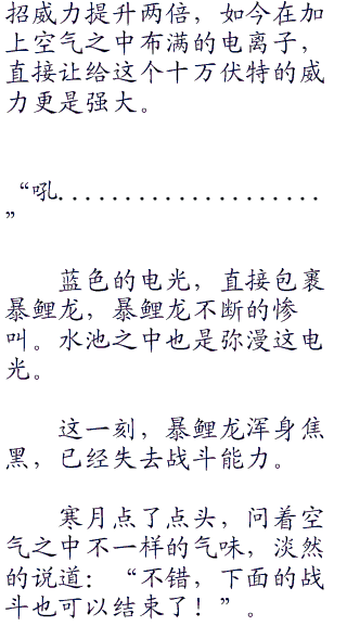 寒月轻笑,然后说道:“很好,十万伏特发射!”