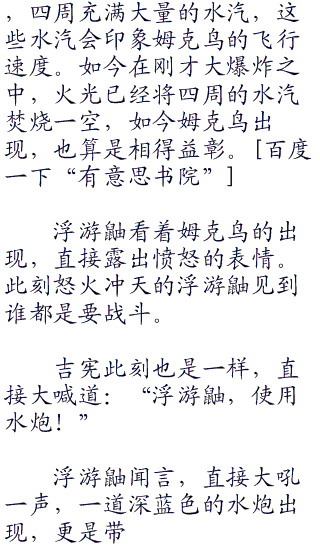 为此,吉宪只能大喊道:“出来吧,浮潜鼬。”