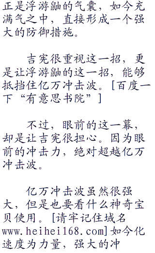浮游鼬乃是吉宪主力之中的主力,刚刚出场直接迎接巨大的爆炸。巨大的爆炸,使用保护,在加上浮游鼬的浮游气圈才抵挡住。浮游鼬虽然没有失去战斗能力,但是也已经接近体力的底线。