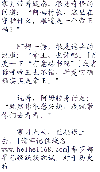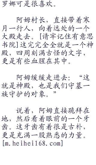 希罗娜也是奇怪,根据希罗娜对于历史的了解,自然知道眼前的村落根本就没有过记载,但是看过这里的沧桑感觉,自然知道这里也很有历史气息。