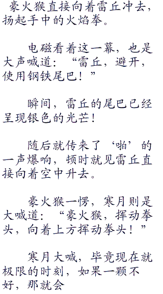 电磁看着这一幕,也是激动的大吼道:“雷丘,战斗吧,使用十万伏特。”