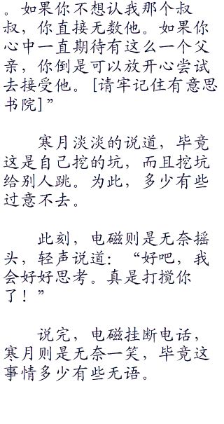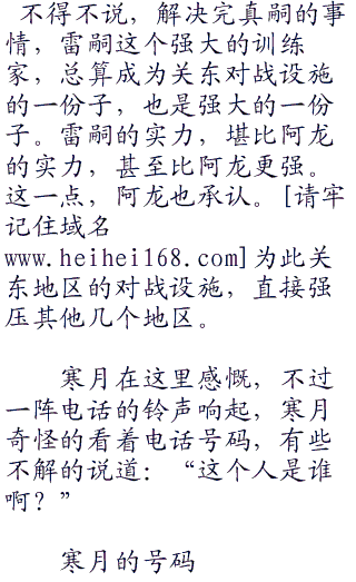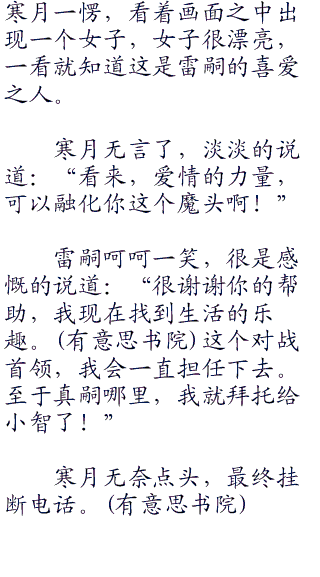 随后,寒月挂断电话,然后再次拨打电话,这一次则是拨打雷嗣的电话。