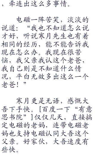 寒月则是摇头,淡淡的说道:“原来如此,真嗣的性格可不是这么好改变。不过现在已经出现变化,这便是最大的收获!”
