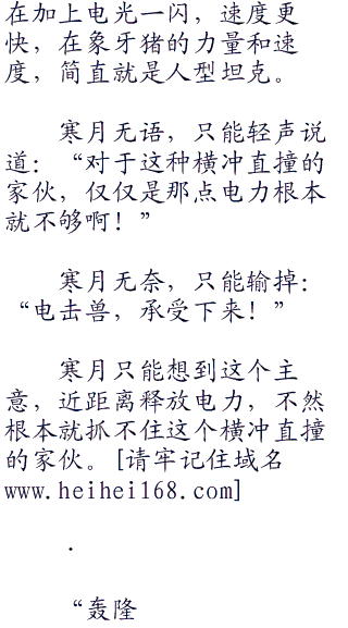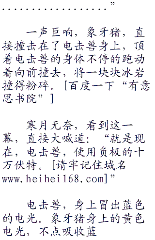 随着两人的命令,顿时就看见电击兽,浑身充斥一股电光,电光更是化成一道闪电。闪电不仅仅有着电力的,麻痹,更是带着电光的锐利。毕竟电光汇聚在一起,化成的锐利程度可是很可怕。