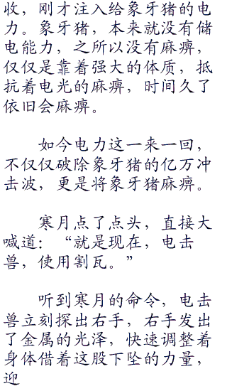 寒月看着小菘已经准备好,轻声说道:“电击兽,使用十万伏特!”