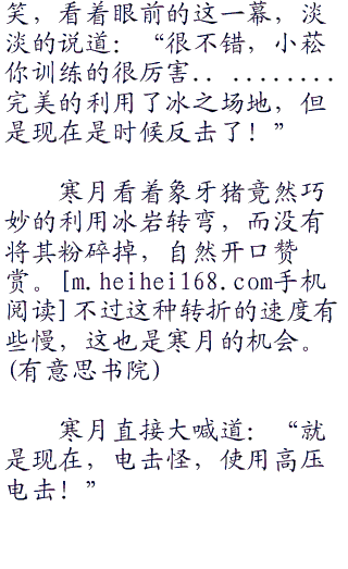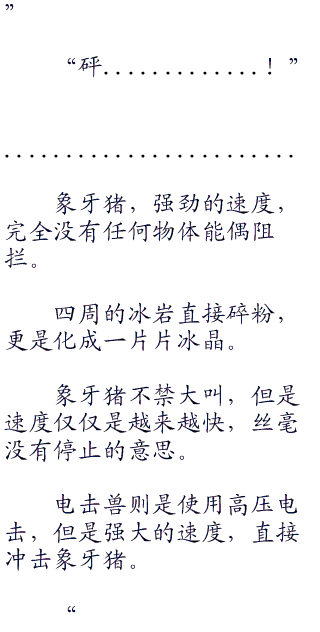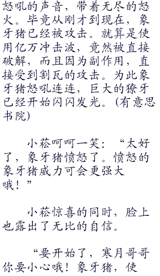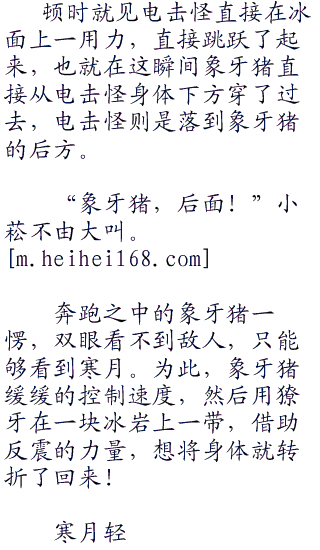 寒月无语,看着明明被下坠力量击中的象牙猪,依旧完好的站在那里的时候,心中是多么的郁闷了。这么强大的防御力,你爸爸知道吗?寒月无语,心中也想起以前对手的郁闷心情。以前寒月靠着神奇宝贝,强大的体力,强大的防御力,让无数训练家郁闷连连。毕竟你攻击了半天,才知道对方一点事情都没有,这是何等的郁闷啊!