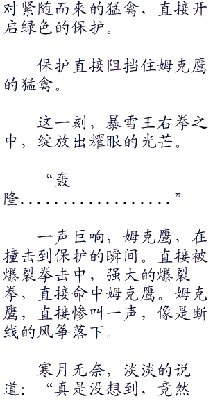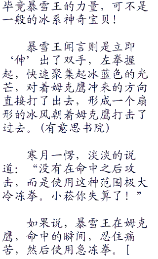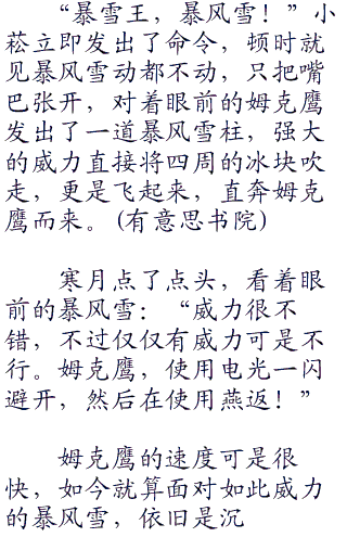 寒月无奈一笑,不过小菘握紧粉拳,然后轻声说道:“我的最后一只神奇宝贝,出来吧,暴雪王!”