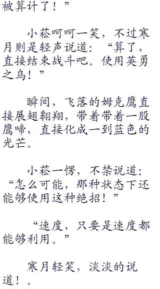 “好不甘心啊,寒月哥哥你太奸诈了。竟然用闪光!”
