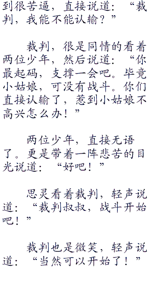 玲子带着笑容,然后看着比赛战场,轻声说道:“下面抽签决定参加比赛顺序!”