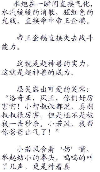 凤清儿发出笑声:“额,思灵需要啊!思灵想要洛奇亚和凤王一同登场,为此找我要凤王!”