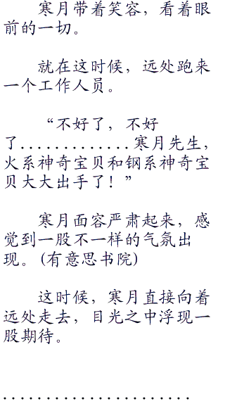 寒月无奈摇头,看着眼前的一百多只神奇宝贝:“原来是争夺优秀的配偶啊!”
