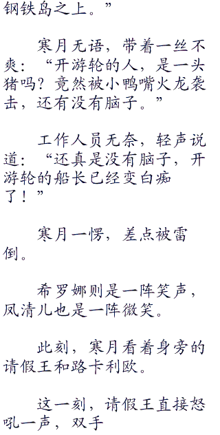 寒月无语了,不禁说道:“雌雄比例怎么这么大,一百多只围住一只,这是多么丧心病狂啊!”