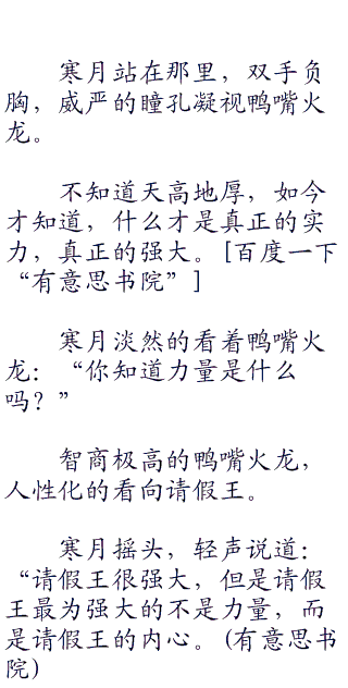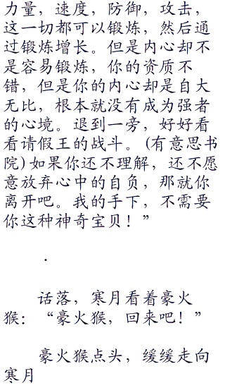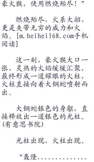 寒月看着汇聚银色光芒的大钢蛇,带着一股热血:“这才是真正力量的碰撞,我很喜欢这种碰撞。想来请假王现在也很激动,但是豪火猴可是不弱。