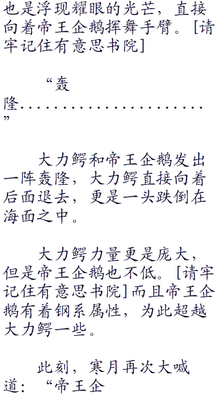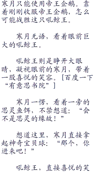 其实,寒月还算好,有着帝王企鹅。那个掉出三十只鲤鱼王