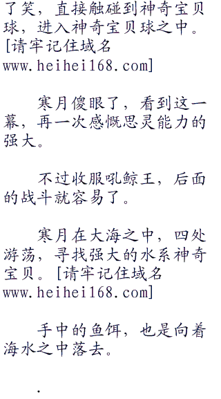 寒月一愣,仅仅是一笑,心中则是希望这句话别实现。要是钓出一个超神兽,寒月也不是对手啊。毕竟规定之只能使用第一轮,钓上来的神奇宝贝。