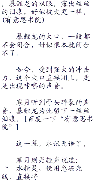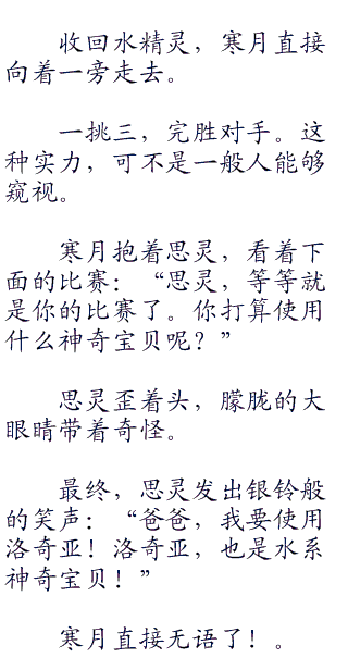 寒月则是轻笑,淡淡的说道:“水精灵,在使用一次热水!”
