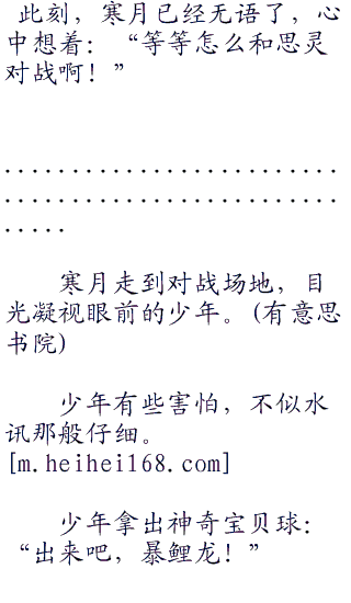 寒月站在一旁,看着已经快哭的少年,只能无奈的说道:“思灵这么做,是不是有些过分了。明明是战斗,却让对方的神奇宝贝给自己表演。”