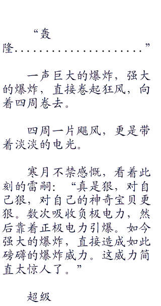 此刻,远处的雷嗣,目光之中带着凶悍:“雷鸣狮,使用十万伏特!”