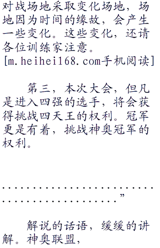 联盟规定,每个参加联盟的训练家,必须要拥有三枚八大道馆的徽章,不然没有参赛资格。不过八大道馆之中,基本上都是专精一个属性。钢铁道馆乃是岩石系,缘之道馆乃是鬼系,滨海道馆乃是电系.............单一的属性,很容易被克制。为此,很多训练家使用相克的神奇宝贝,还是能够拿到三枚徽章。如此,联盟大赛之中,才会充斥这么多的虚假之人。”