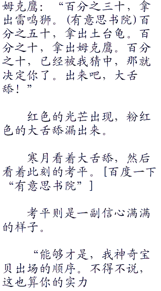 考平看着姆克鹰,目光之中闪耀着一丝精光:“寒月先生实力强悍,我万万不能极其一分。不过我有自己的战术,有自己的方法。收集无数的资料,总算能够调查出一些规律。”