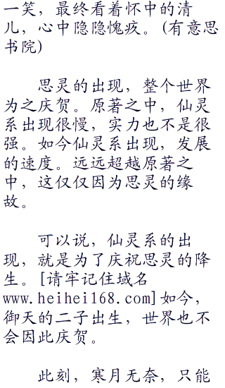 清儿则是摇头,带着幸福的笑容抚弄逐渐变大的小腹:“才不要,我带孩子出世,我要给这孩子最尊贵的降临方式。我没有灵儿的能力,不能因为孩子的降生,形成一个新属性。为此,我号召百万大军,庆贺我的孩子降生。”