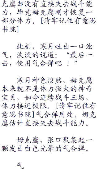 一声爆炸升起,寒月的目光看着眼前的姆克鹰:“连续三场的战斗,确实有些精疲力尽了!”
