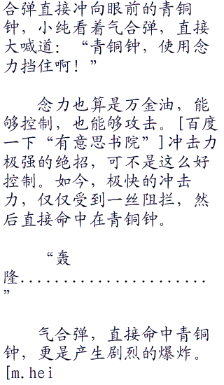 小纯则是大吼:“想要躲避,这可不能允许。古铜钟,使用念力。”