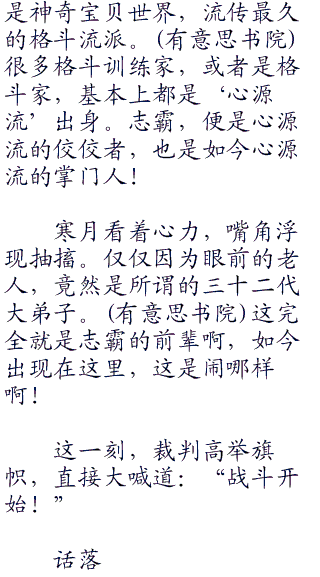大爷双手猛然击拳,大喝道:“吾乃心源流,第三十二代大弟子‘心力’是也。”