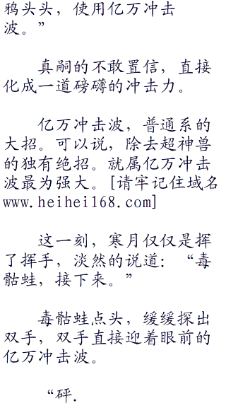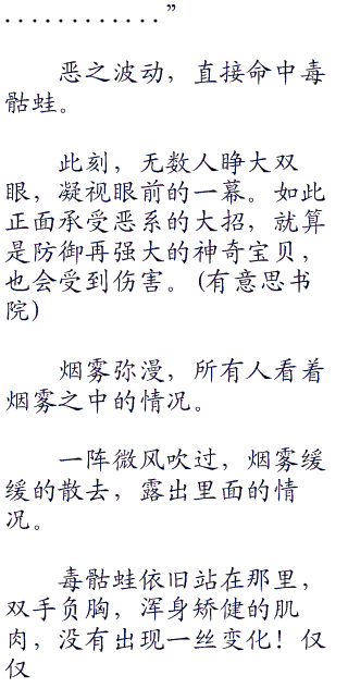 真嗣奇怪,看着眼前战意沸腾的毒骷蛙,直接怒吼:“小看我吗?既然如此,乌鸦头头,使用恶之波动!”