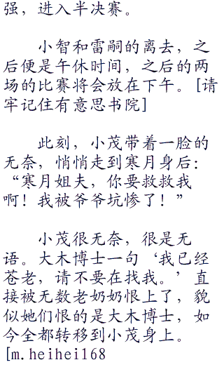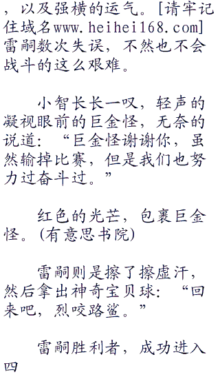 裁判傻眼,看着眼前的这一幕,只能无奈的说道:“比赛结束,烈咬路鲨和巨金怪,双双失去战斗能力。巨金怪失去战斗能力在前,为此胜利者是烈咬路鲨,以及雷嗣先生。雷嗣先生进入四强,进行半决赛的比赛!”