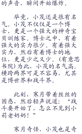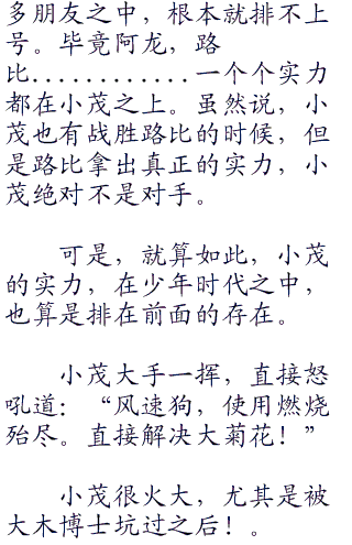 小茂真是欲哭无泪,出来旅行,就没有一天顺心。却不说,自己顶着一个大木博士孙子的名号,好似做出无数事情,全都因为大木博士的缘故。另外无数的老奶奶和老爷爷,看到自己简直要吃了自己。
