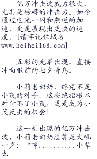 小莉老奶奶呵呵一笑,轻声说道:“七夕青鸟,真是令人怀念啊!木木你还记得吗,当初你交给我的绝招!”