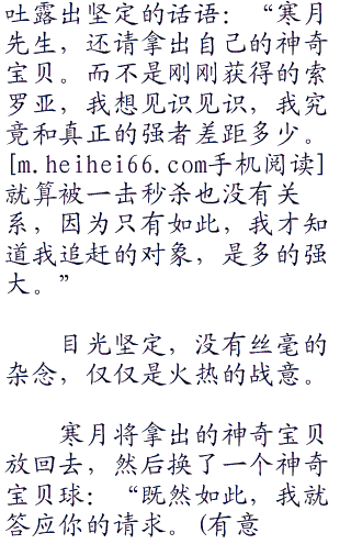 寒月点头轻笑,淡然的说道:“好吧,我答应你。你的第一场对战,就有我来做你的对手。小智你也更过来吧!”