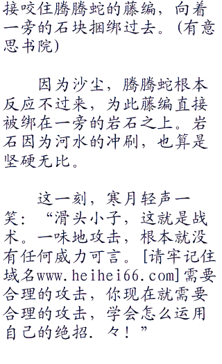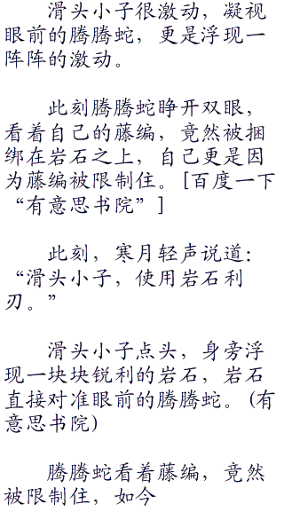 寒月轻笑,淡然说道:“时间差不多了。滑头小子出来吧,将藤编绑在一旁的石块上。”